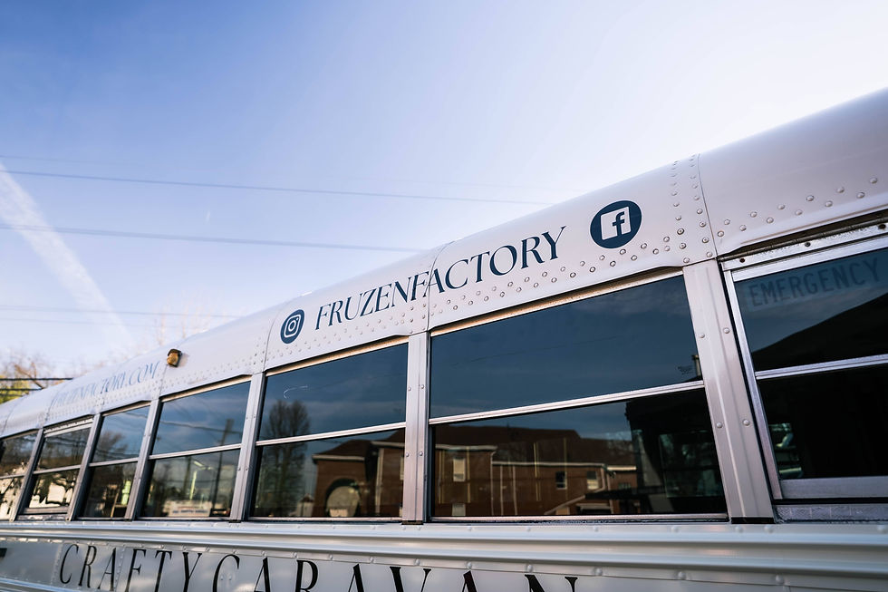 FruzenFactory wanted to use a school bus for their business so we transformed it to match their aesthetics.