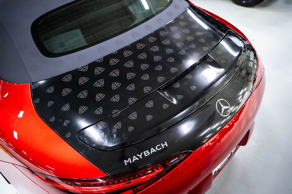 New SL680 have a monogram design on the hood. The customer wanted it to match on the trunk so we matched the design and printed it to install.
